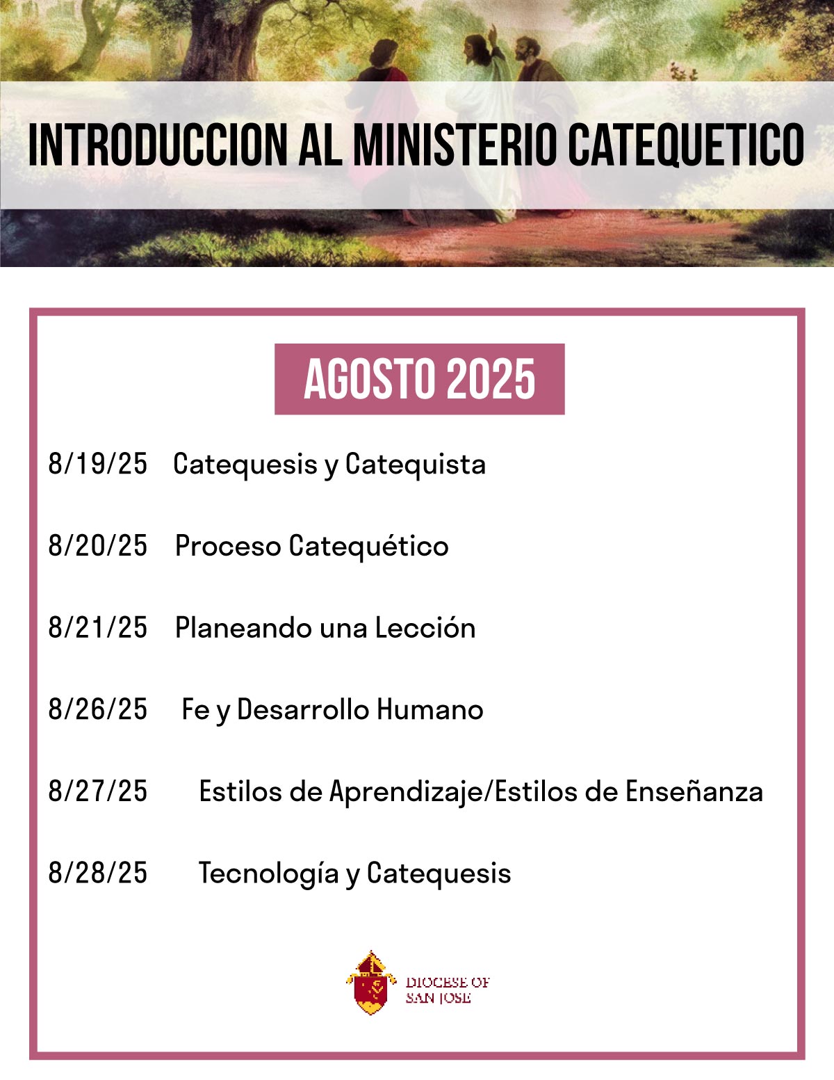 Un curso de 6 sesiones que cubre la naturaleza y el propósito de la catequesis y la metodología. Las 6 sesiones cumplen con uno de los requisitos para la certificación de catequista.