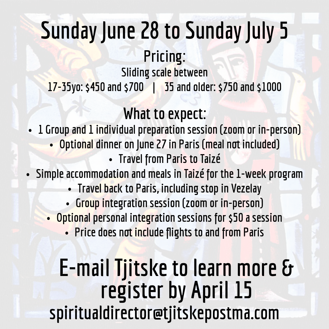 Click here for more info. Register email spiritualdirector@tjitskepostma.com