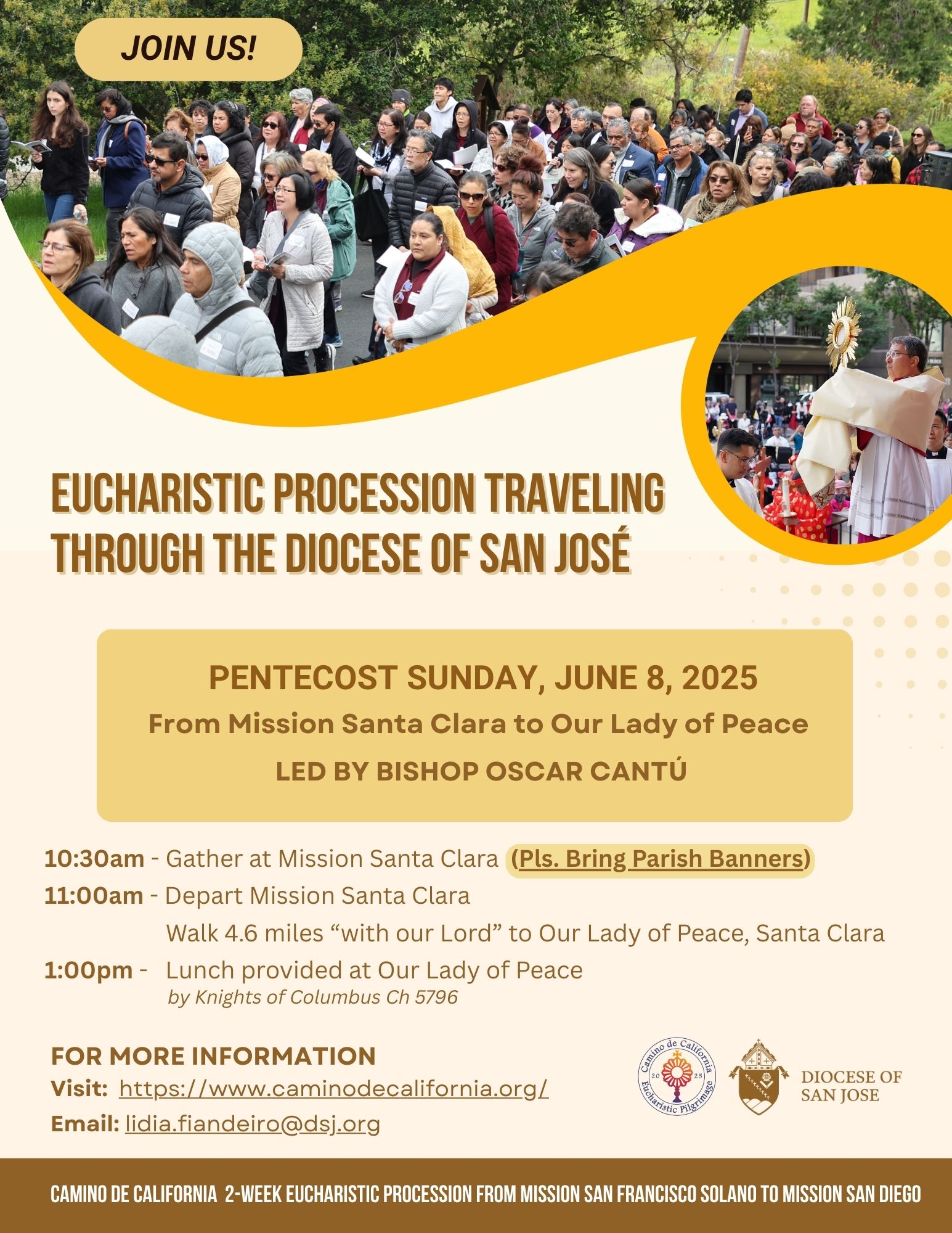 Join the Camino de California Eucharistic Procession as it travels through the Diocese of San Jose on Pentecost Sunday, June 8