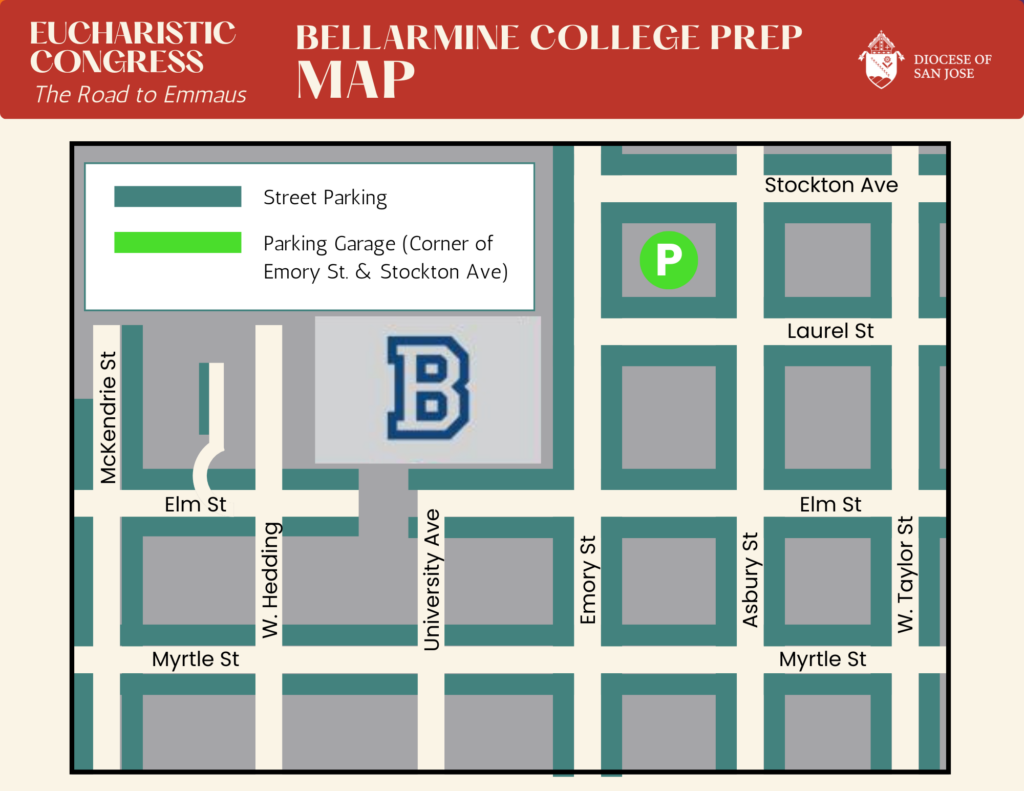 - Parking Garage: Located at the corner of Emory St. and Stockton Ave. Head towards 795 Stockton Ave, San Jose, CA. Event signs and parking attendants will be present to guide you.