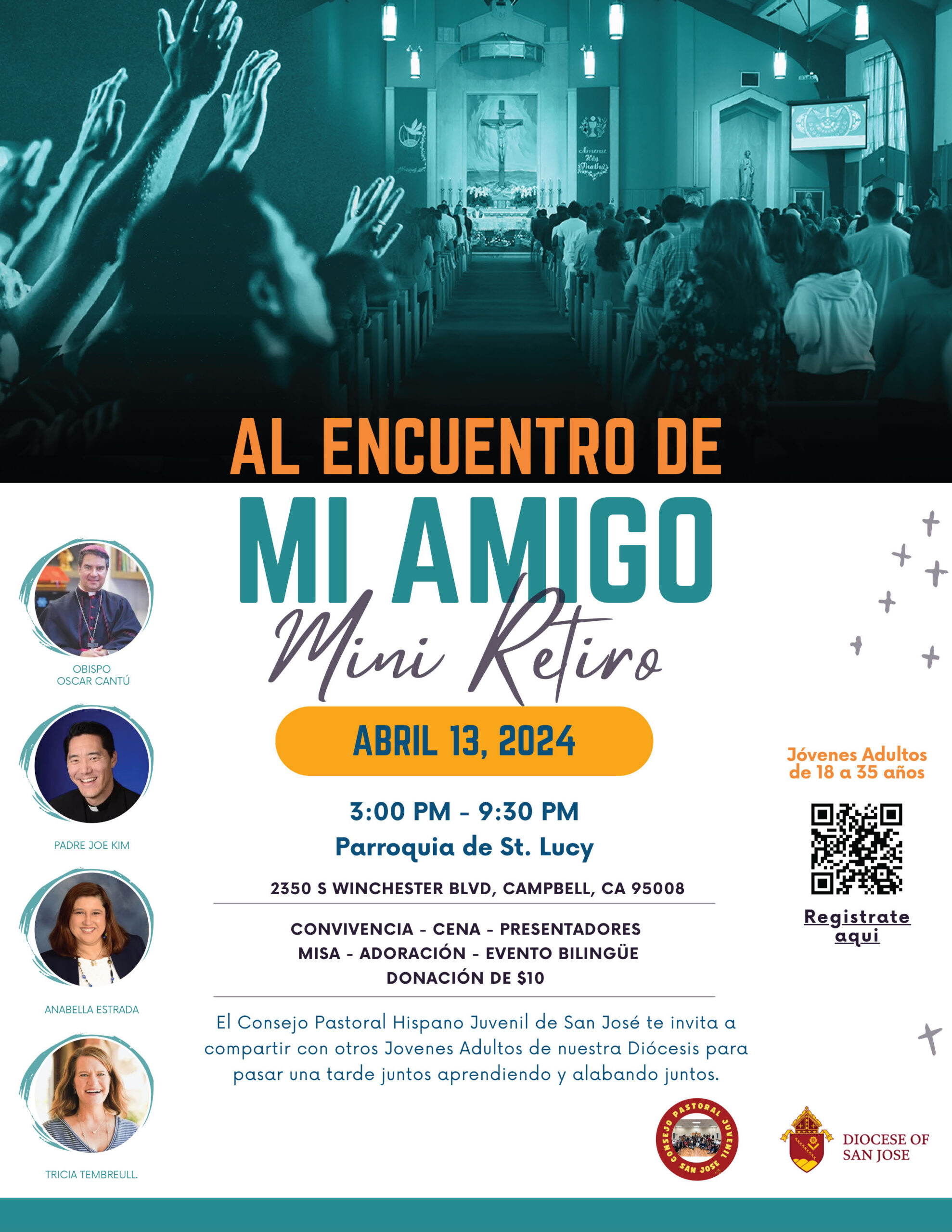 The Consejo Pastoral Juvenil Hispano and the Diocese of San José Youth Adult Ministry invite you to spend the afternoon with others young adults worshipping, learning more about our faith, breaking bread, and having fun together.