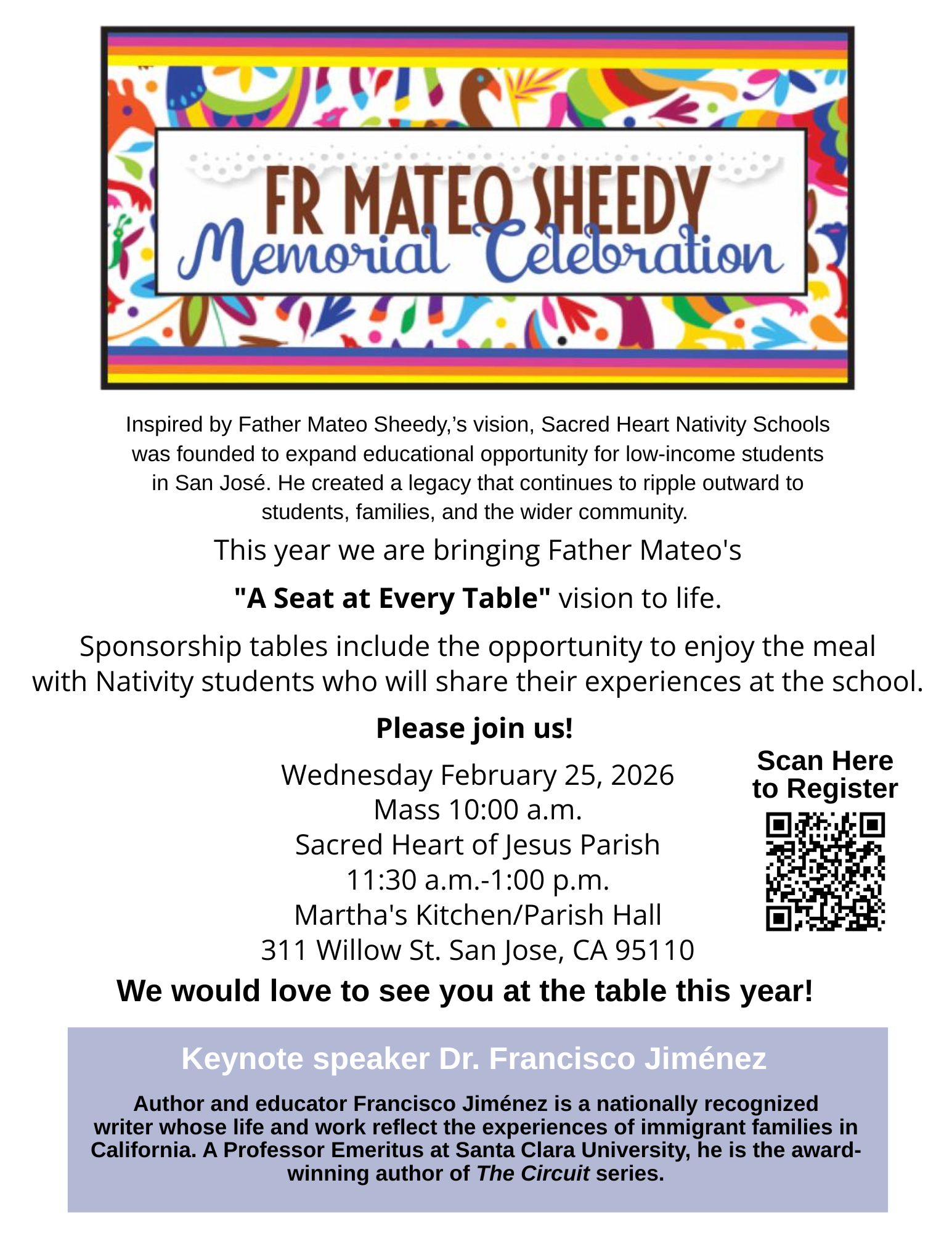 Inspired by Father Mateo Sheedy,’s vision, Sacred Heart Nativity Schools was founded to expand educational opportunity for low-income students in San José. Father Mateo created a legacy that continues to ripple outward to students, families, and the wider community.