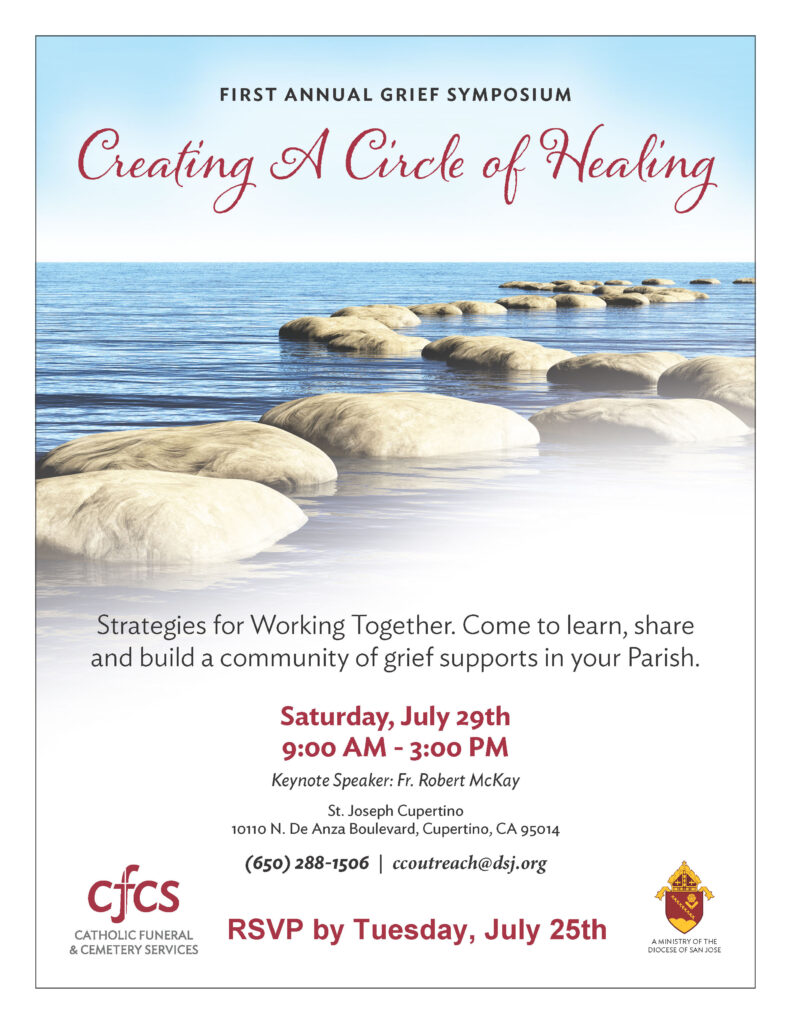 « All Events This event has passed. FIRST ANNUAL GRIEF SYMPOSIUM July 29, 2023 @ 9:00 am - 3:00 pm « Retrouvaille of San Jose/Silicon Valley Virtual Marriage Program 11th Annual Caregivers Count Conference » Presented by Catholic Cemeteries-DSJ Add to calendar Google Calendar iCalendar Outlook 365 Outlook Live Details Date: July 29, 2023 Time: 9:00 am - 3:00 pm Venue St. Joseph Cupertino 10110 N. De Anza Boulevard Cupertino, CA United States + Google Map Phone 408-252-7653