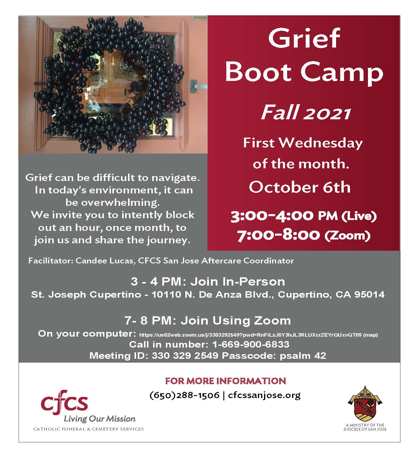You are invited to join us for Grief Boot Camp the first Wednesday of every month.