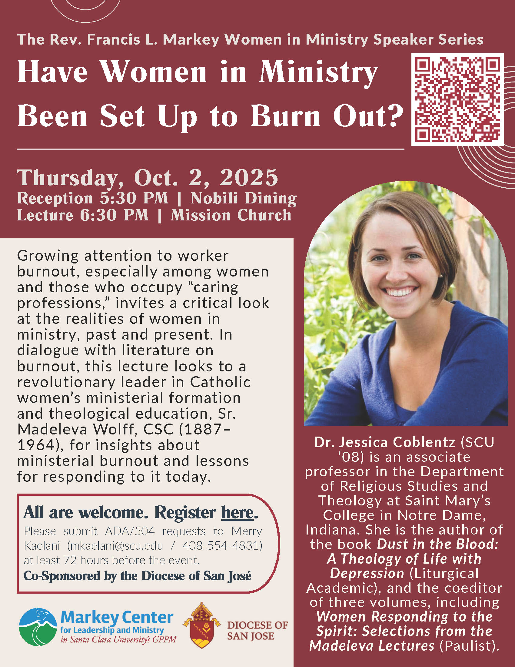 « All Events This event has passed. Have Women in Ministry Been Set Up to Burn Out? October 2 @ 5:30 pm - 7:30 pm « 40 Days for Life Campaign 5 Week Young Adult Lenten Bible Study » Add to calendar Google Calendar iCalendar Outlook 365 Outlook Live Details Date: October 2 Time: 5:30 pm - 7:30 pm Event Categories: Speakers, Workshop Venue Santa Clara Univeristy, Mission Church 500 El Camino Real Santa Clara, CA 95053 United States + Google Map Related Events Advent Parish Mission December 9 @ 8:00 am - 9:00 am Advent Parish Mission December 9 @ 6:15 pm - 8:00 pm Advent Parish Mission December 10 @ 6:00 pm - 8:00 pm