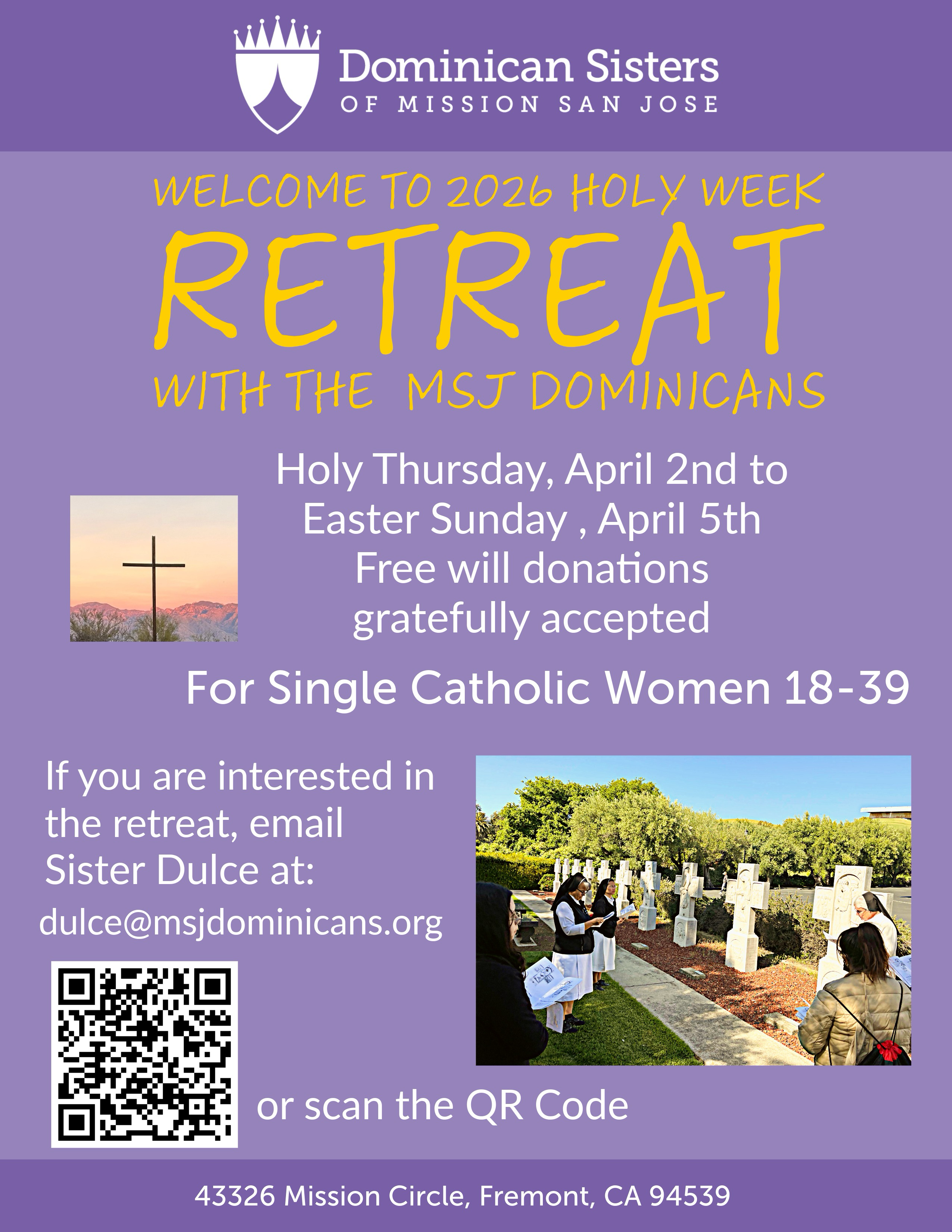 2026 Holy Week Retreat with the Dominican Sisters at their Motherhouse. For Single Catholic Women ages 18-39.Holy Thursday, April 2nd, to Easter Sunday, ending after lunch.