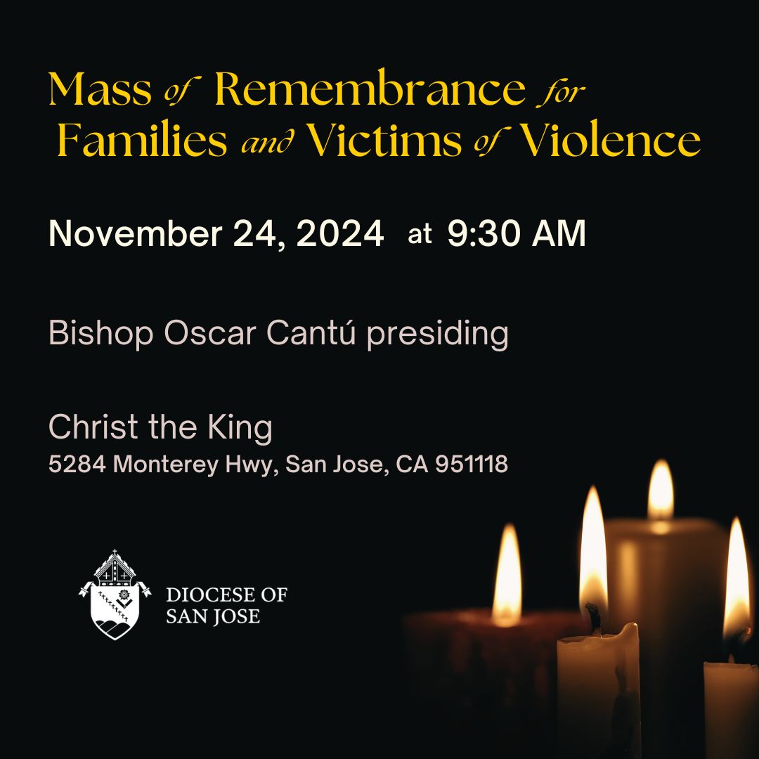 Please join us with prayer in this Mass as we remember the family and victims of violence this year.