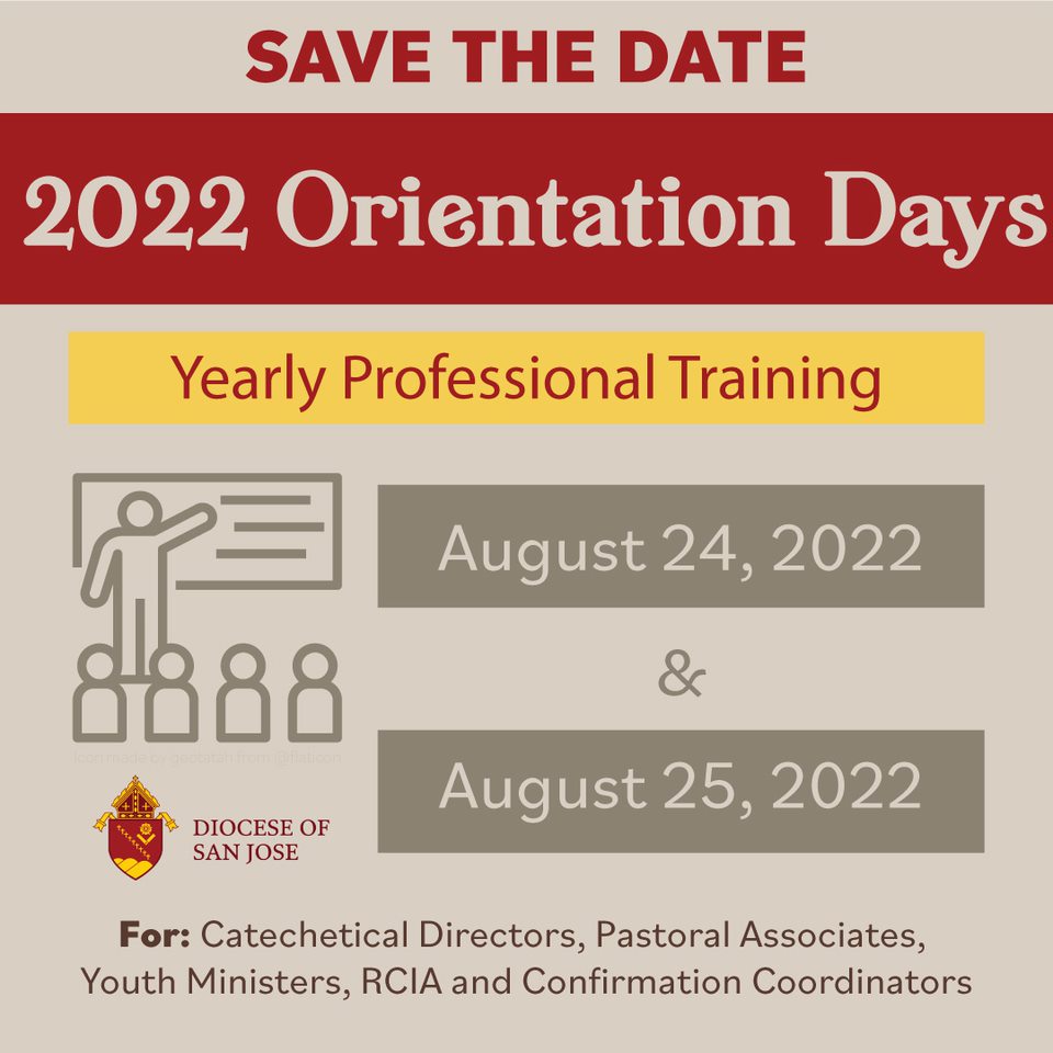 Calling all Faith Formation Directors, Catechetical Coordinators, Youth Ministers, Confirmation, and RCIA Coordinators for a two-day orientation at the Chancery. PCLs roles and responsibilities, best practices, certification processes, and how the agencies and departments of the Chancery support your ministry will be covered.