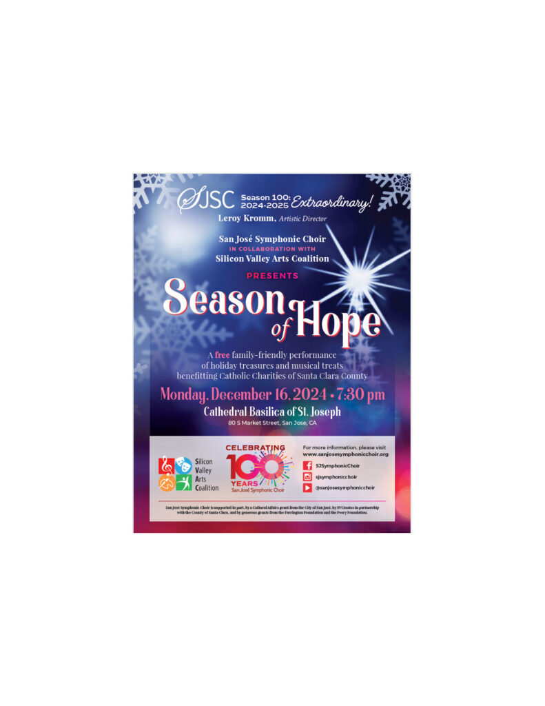 San Jose Symphonic Choir in Collaboration with Silicon Valley Arts Coalition presents, Season of Hope.