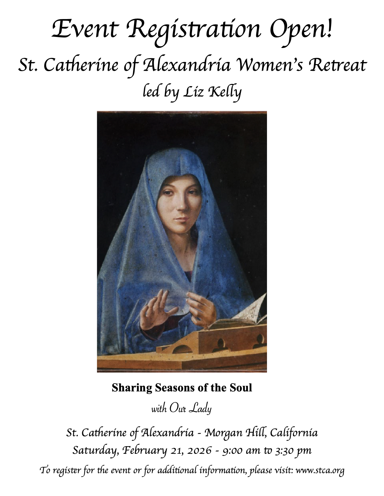 Women’s Spirituality Retreat. Welcome back award-winning author, speaker and the community leader for Women’s Formation at Bishop Barron’s Word on Fire Institute, Liz Kelly in a day retreat. Sharing Seasons of the Soul with Our Lady