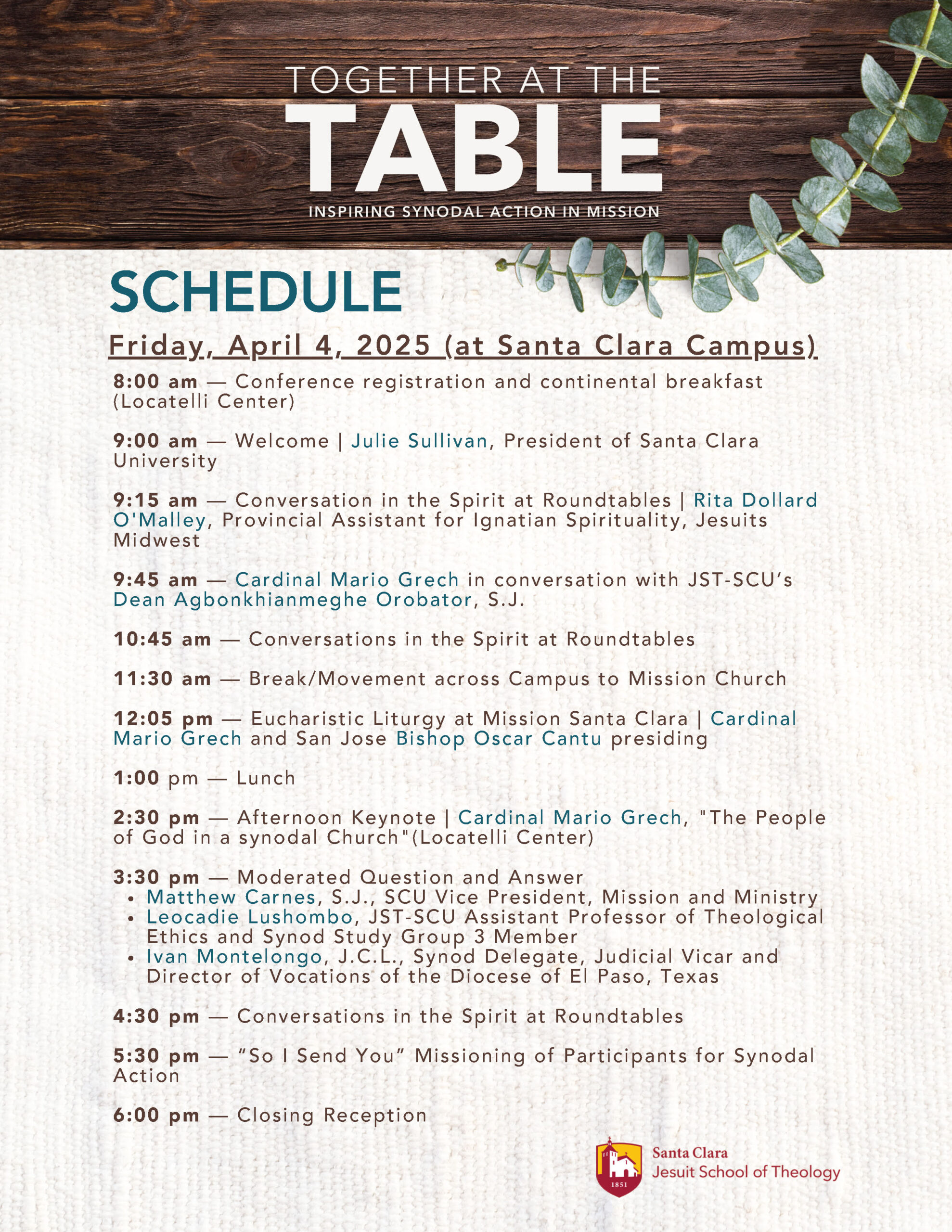 The Synod on Synodality has concluded, and the journey continues. Join the Jesuit School of Theology of Santa Clara University, key ecclesial leaders, and other partners in mission who are committed to building a synodal Church. We invite you to participate in exploring the transformative power of synodality and prepare for the vital work ahead of remodeling the Church. Everyone is welcome.Your seat at the table is here.